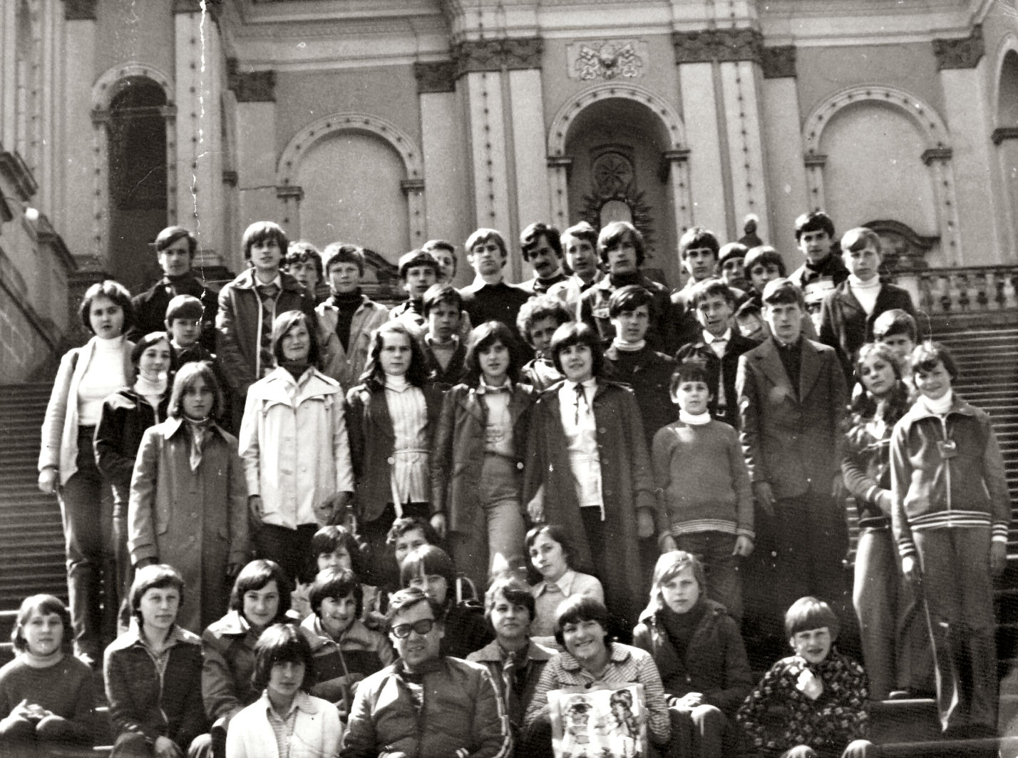 1882 - nauczyciele: p. Krystyna Grabiec, p. Roman Grabiec, p. Edward Karpiński, p. Kornel Liskowacki z uczennicami