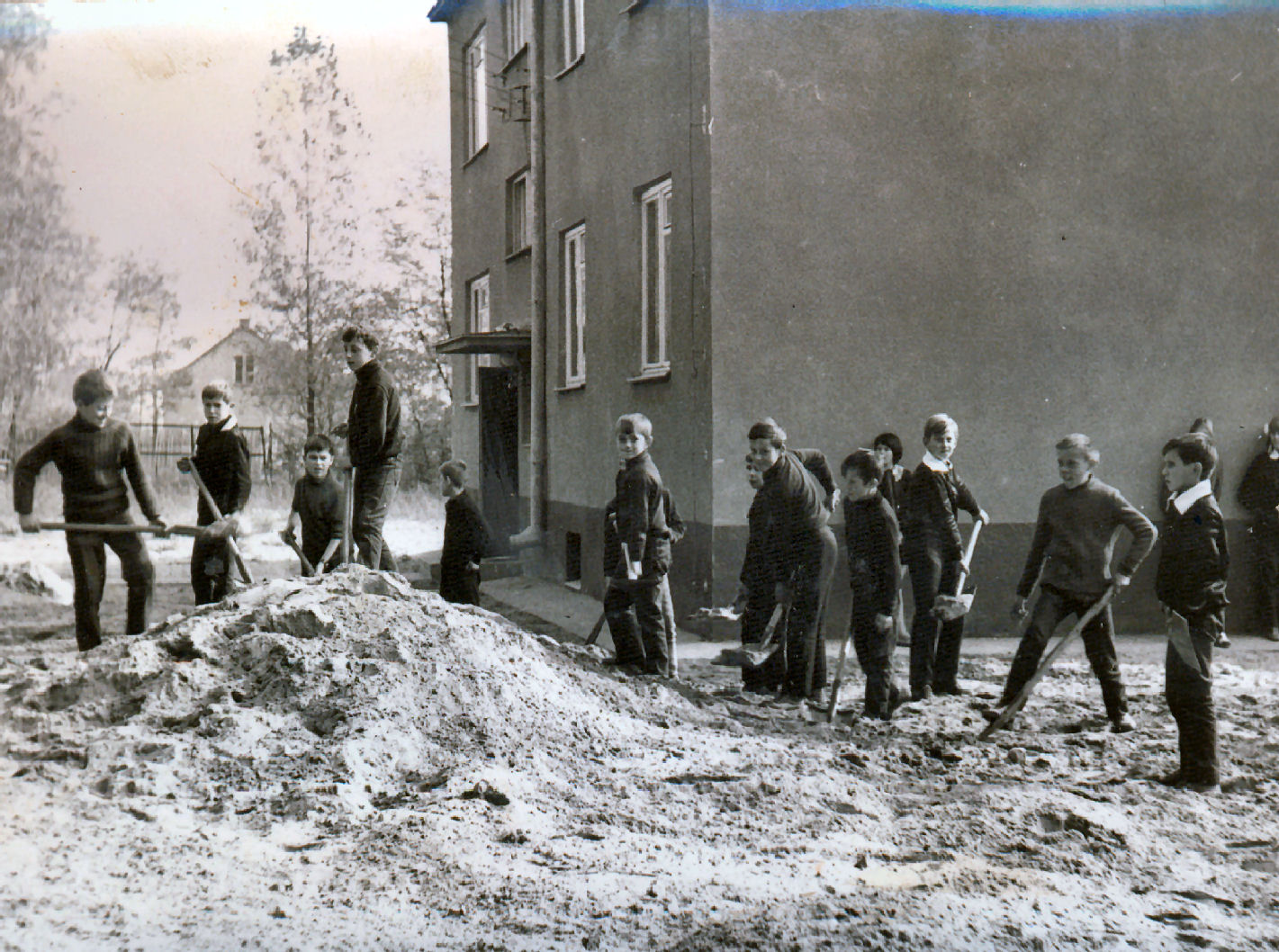 Rozbudowa budynku szkolnego pod koniec lat siedemdziesiątych