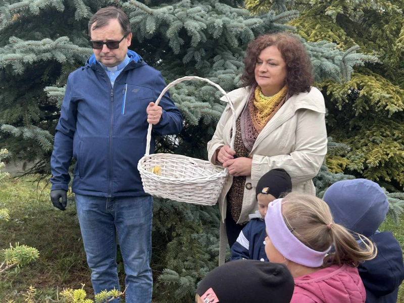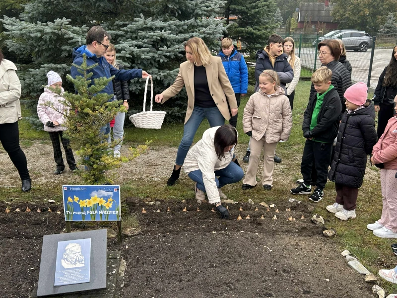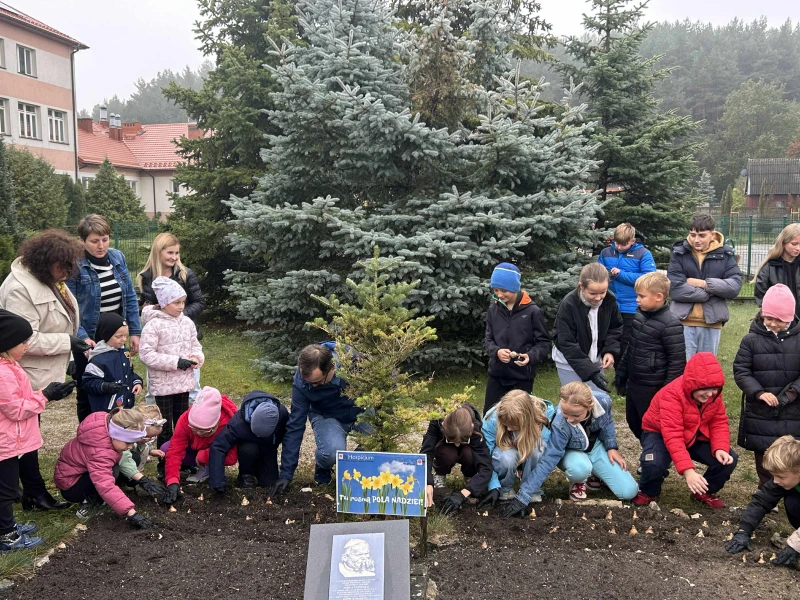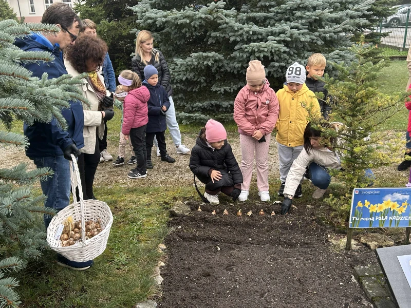 Uroczyste otwarcie akcji charytatywnej w naszej szkole odbyło się 8 października. Tego dnia przedstawiciele klas, grup przedszkolnych, nauczycieli, dyrekcja oraz opiekun szkolnego koła wolontariatu Caritas — ks. Mariusz Rozin — zasadzili cebulki żonkili. Wydarzenie otworzyła pani dyrektor Justyna Michałek, która przypomniała zebranym ideę wolontariatu i podkreśliła, że każdy posadzony kwiat ma przypominać o trosce i wzajemnym wsparciu drugiego człowieka.