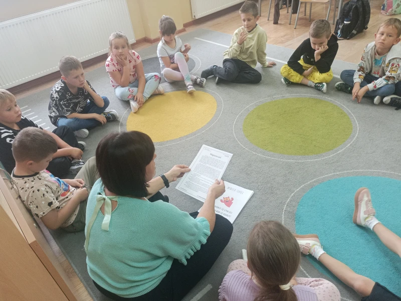 Pedagog szkolny przeprowadziła zajęcia w oparciu o opowiadanie „Magiczna sieć” — historia pajączka, który miał trudności z radzeniem sobie ze złością. Po głośnym czytaniu dzieci uczestniczyły w krótkich ćwiczeniach relaksacyjnych.