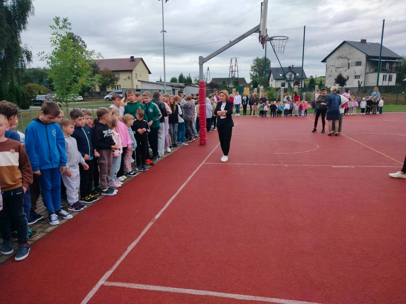 16 września 2025r. w Zespole Placówek Oświatowych odbyła się pierwsza w tym roku próbna ewakuacja. Po sygnale dźwiękowym wzywającym do natychmiastowej ewakuacji przedszkolaki i uczniowie wraz z nauczycielami oraz wszyscy pracownicy opuścili budynek szkoły i udali się na wyznaczone miejsce zbiórki czyli boisko szkolne „Orlik”.