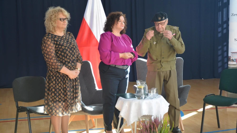 Na pożegnanie młodzież zgotowała szanownemu gościowi owacje na stojąco, natomiast dyrekcja oleszyńskiej szkoły wręczyła pięknie oprawione podziękowanie. Pan major, jak przystało na miłośnika małej ojczyzny, pozostawił dla szkolnej społeczności album pt. „Skarby ziemi świętokrzyskiej”, zachęcając tym samym wszystkich do odkrywania bogactw przyrody oraz zabytków naszego województwa. Mamy nadzieję, że spotkanie oraz wspólne zdjęcie, jakie wykonaliśmy z Panem Majorem, staną się dla kolejnych pokoleń uczniów wehikułem czasu, dzięki któremu wychowankowie Szkoły Podstawowej im. Armii Krajowej w Olesznie zapamiętają historię życia wspaniałego człowieka, który mimo doświadczenia wielkiego zła zachował pogodę ducha i oddanie dla wartości najwyższych – Boga i Ojczyzny.