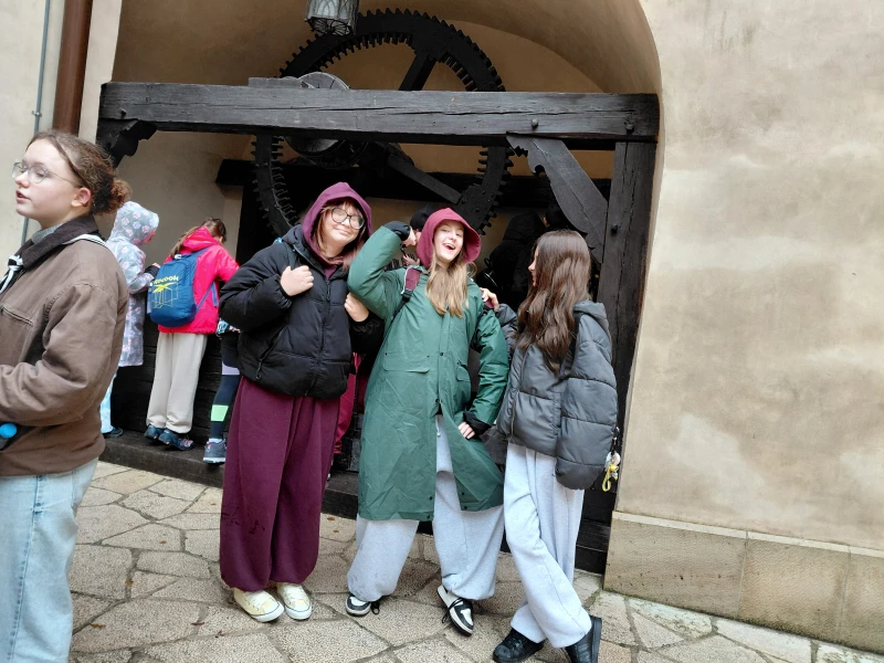 Dojechaliśmy do zamku w Pieskowej Skale, gdzie spotkaliśmy się z przewodnikiem, panią Dorotą. Zamek w Pieskowej Skale jest położony na terenie Ojcowskiego Parku Narodowego i jest jednym z najpiękniejszych przykładów średniowiecznej architektury obronnej w Polsce. Budowlę obronną nakazał postawić tu Kazimierz Wielki już w XIV w., a renesansowy charakter nadali jej ponad 200 lat później jej właściciele – Szafrańcowie. Legenda o Pieskowej Skale opowiada o Dorotce, córce Toporczyków, która zakochała się w lutniście. Po tym, jak jej ojciec wydał ją za mąż za starego Szafrańca, zakochani próbowali uciec, ale zostali schwytani. Zgodnie z legendą, Szafraniec zamurował Dorotkę w baszcie, by zmarła z głodu, a jej wierny pies przez jakiś czas przynosił jej resztki jedzenia, wdrapując się po skale. Nazwa „Pieskowa Skała” ma upamiętniać tego psa. Po drodze do jaskini Łokietka, krótki przystanek i sesja zdjęciowa przy Maczudze Herkulesa, najbardziej rozpoznawalnym symbolu Ojcowskiego Parku Narodowego. Krajobraz parku tworzą liczne wytwory skalne z wapieni górnojurajskich, o białej i jasnoszarej barwie. Nieodłącznym elementem wapiennej rzeźby Wyżyny Krakowsko - Częstochowskiej są jaskinie. Jedną z nich tj. Jaskinię Łokietka zwaną Grotą Łokietka zwiedziliśmy. Legenda mówi, że Władysław Łokietek skrył się w tej trudno dostępnej grocie na sześć tygodni po ucieczce z Krakowa przed wojskami Wacława II, czeskiego króla. Podobno życie uratować mu miał pająk, który swoją pajęczyną zasłonił wejście do jaskini. Z jaskimi udaliśmy się na obiad. Po zakwaterowaniu w Szkolnym Schronisku w Krakowie, kolejną atrakcją tego dnia była wizyta w Aqua Parku w Krakowie – o jakże potrzebny był relaks po wyczerpującej wędrówce! Ten dzień kończy kolacja, toaleta wieczorna, a potem sen.