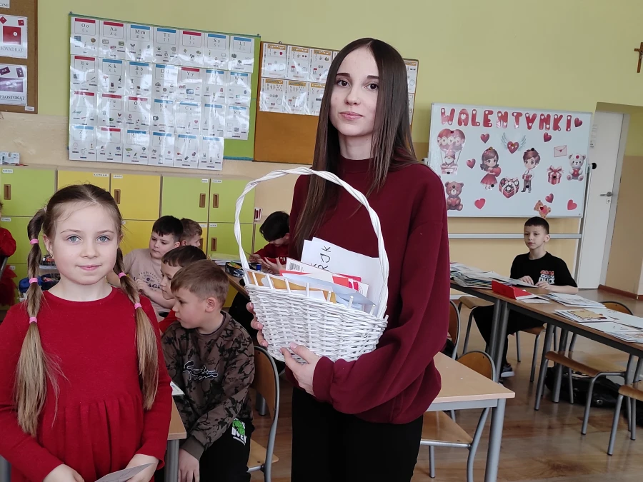 16 lutego 2026 r. uczennice klasy VII w składzie: Amelia Dachowska, Nikola Hernes i Lena Kowalczyk rozdawały kartki walentynkowe. W całej szkole panowała radosna i serdeczna atmosfera. Obchody Walentynek były doskonałą okazją do okazania sympatii, życzliwości i koleżeństwa.