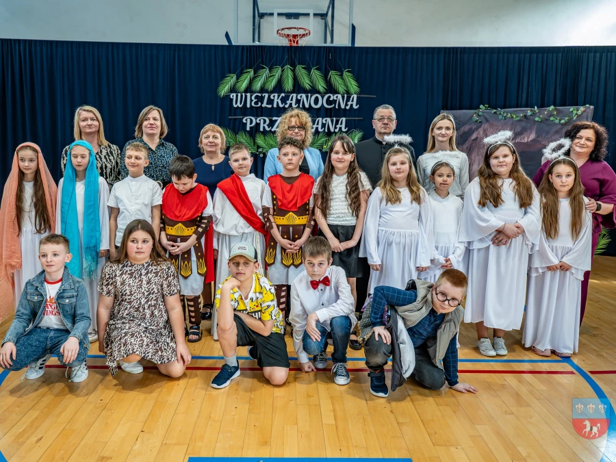 Z tej okazji uczniowie klasy trzeciej pod kierunkiem wychowawcy pani Magdaleny Kawki zaprezentowali wyjątkowy spektakl pt. „Wielkanocna Przemiana”, który w trzech odsłonach ukazał istotę Wielkanocy. Przedstawienie rozpoczęła historia niesfornego chłopca, którego wewnętrzna przemiana z łobuza w grzeczne dziecko stała się symbolem nowego początku. Następnie widzowie zostali wprowadzeni w uroczysty nastrój za sprawą części poświęconej tajemnicy Zmartwychwstania. Całość dopełnił edukacyjny finał, w którym trzecioklasiści przybliżyli znaczenie najważniejszych symboli wielkanocnych. Dzięki dużemu zaangażowaniu młodych aktorów, przedstawienie stało się dla wszystkich zgromadzonych nie tylko artystycznym przeżyciem, ale przede wszystkim radosną lekcją tradycji i dobra.